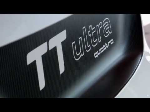 The concept car is painted in the special color crystal white. The CFRP used on the exterior adds a striking touch on the hood, the roof, the sides and the trunk. In the interior the same material also adorns the door trim, the center console and the cross-bracing that replaces the rear seat bench. The developers have also fitted the bucket seats from the R8 GT to the concept study; their chassis alone, made out of fiberglass-reinforced plastic (FRP), reduce weight by 22 kilograms(48.50 lb). The driver does not have to make any compromises when it comes to equipment and appointments: air conditioning, electric window controls and an electromechanical parking brake come as standard on the TT ultra quattro concept. A veritable highlight: the exterior mirrors are replaced by compact cameras which transfer the images directly into the digital cockpit.