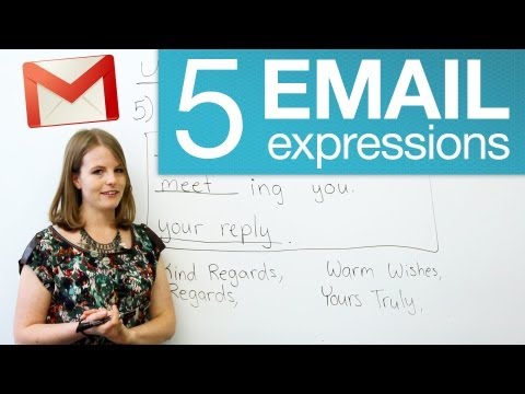 http://www.engvid.com/ Having trouble writing an email? In this video, I will teach you five useful email expressions that will help you to write better emails. I will also teach some email vocabulary such as forward, attachment, and cc, along with some ways to end emails. Is it okay to use cc as a verb? Watch this class and find out! And don't forget to take the quiz: http://www.engvid.com/5-useful-email-expressions/