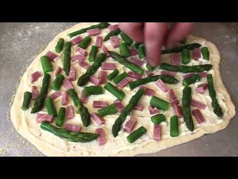 Learn how to make an Asparagus Ham Ricotta Pizza Recipe! - Visit http://foodwishes.blogspot.com/2012/05/this-asparagus-ham-and-ricotta-pizza.html for the ingredients, and over 700 additional original video recipes! I hope you enjoy this Asparagus Ham Ricotta Pizza Recipe!