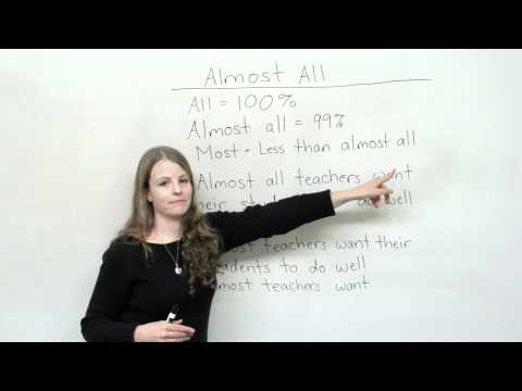 http://www.engvid.com/ Most, almost, or almost all? In this English lesson for beginners, we examine a common mistake students make. Do 'almost all' and 'most' mean the same thing? "Almost cats like birds", "almost all cats like birds", or "most cats like birds"? What is the difference? Almost all of you will get something from this lesson.