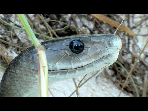 http://Ojatro.comhttp://Ojatroblog.blogspot.comAfrica's most feared snake, the elusive Black Mamba, holds the record for being the world's second longest venomous snake (after the king cobra), averaging around 10 feet in length, and sometimes growing to lengths of 15 feet. It is as well the fastest snake in the world, capable of moving at 10 - 12 mph (16--20 km/h). The Black Mamba is not named for the color of its body, which is usually a shade of grey. But for the highly pigmented interior of its mouth, which it shows at a threat display. Many people fear that the black mamba will actually chase and attack humans unprovoked, and there are evidences to support such concerns. Regardless, attacks on humans are surprisingly rare, more people die in Africa due to bites from cobras and other venomous snakes such as the puff adder. Black Mambas feed meanly on small mammal, reptiles and birds but it has been observed, that snakes sometimes prey on animals that are to large to devour. Black Mamba in tree was filmed by Heiko Kiera aka Ojatro in 2009.The black mamba, deadly, venomous snakes serpientes mortales, el mambo negro, cobras mortais, a mamba negra, смертельной змеи, черная мамба, tödliche Schlangen, die Schwarze Mamba, 致命的蛇,黑曼巴, งูมฤตยูดำ Mamba, 致命的なヘビ、ブラックマンバ, घातक साँप, काले एक प्रकार का अफ्रिकान साँप, rắn chết người, Mamba đen, nakamamatay snakes, ang black mamba, الثعابين القاتلة، ومامبا السوداء