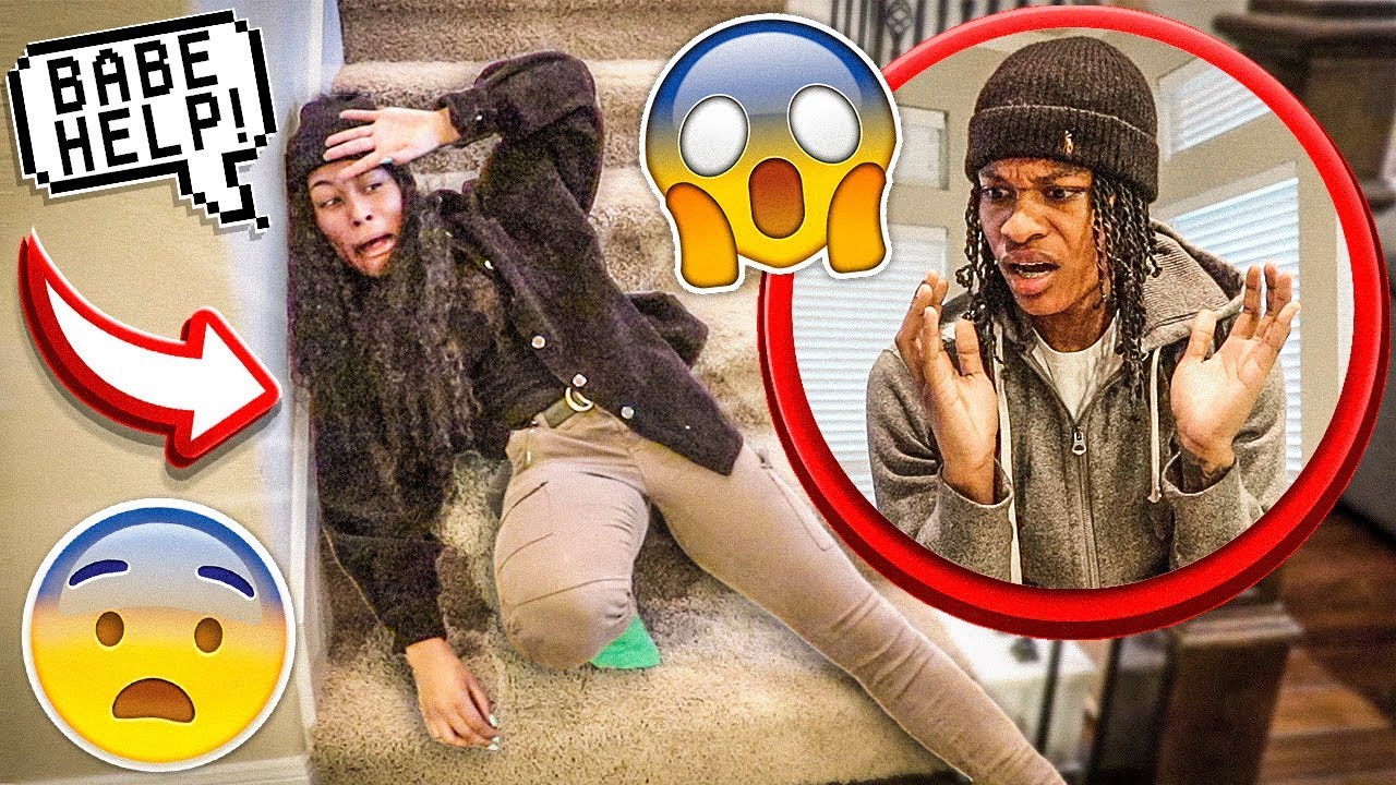 Falling Down The Stairs Prank On Girlfriend! *Cute Reaction*