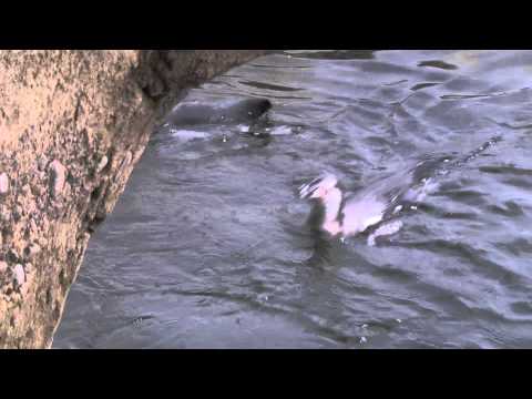 Humboldt penguin chicks explore the Oregon Zoo Penguinarium.