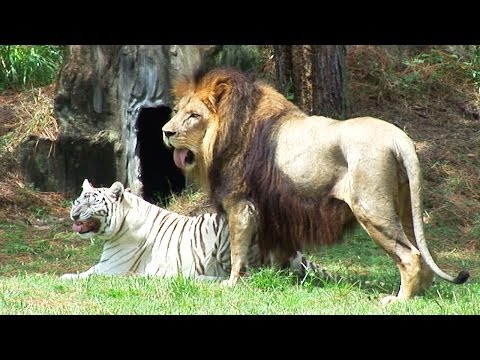 Cameron (Lion)&Zabu (white tiger) have their enclosure transformed thanks to the hardwork of Big Cat Rescue volunteers! *We do not breed at Big Cat Rescue.