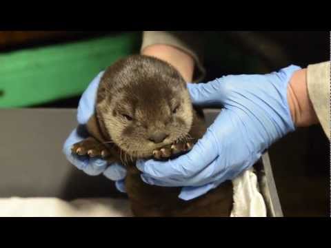 Oregon Zoo baby river otter Molalla gets a quick checkup.