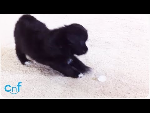 Bouncing Puppy Loves Cute Baby