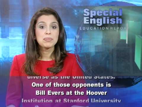 This is the VOA Special English Education Report, from http://voaspecialenglish.com | http://facebook.com/voalearningenglishMore than forty of the fifty American states have approved what are known as the common core state standards. These are lists of content that students are supposed to learn at each grade level from kindergarten to high school. State governors and schools chiefs led the effort to develop the standards. The project involved teachers, administrators, experts and public comments. The final standards were released in June of twenty-ten. Acceptance is voluntary. But acceptance helped states that entered President Obama's four-billion-dollar "Race to the Top" competition for school reform.The standards are for English language arts and math. Supporters say these provide clear goals to prepare students to succeed in college and in jobs. But critics of national standards say the idea goes against one of America's oldest traditions -- local control of education. Political conservatives generallyoppose federal intervention in schools. Yet it was a Republican president, George W. Bush, who expanded testing requirements to show that public schools are making yearly progress. Still, opponents of national standards call them "one-size-fits-all." They say the idea does not make sense for a country as large and diverse as the United States. One of those opponents is Bill Evers at the Hoover Institution at Stanford University in California. He was an assistant education secretary under President Bush. Mr. Evers warns about "closing the door on innovation by locking in a national, uniform bureaucratic system." He says, "The states don't have a problem in setting their curriculum -- they've been doing it ever since there've been public schools."Richard Riley was education secretary to President Bill Clinton, a Democrat. Mr. Riley says: "Conservatives would be concerned if we had federal-mandated common core standards. That's not what we have. It's a state-driven measure. High standards, challenging work for young people across the country." Mr. Riley says in the nineteen nineties he pushed states to develop their own statewide standards. But some of those standards were not very strong, he says, so he believes national standards are needed. But Bill Evers says technology now makes it easier to develop individual learning plans for students. He says schools should worry less about a common curriculum and more about improving teacher quality. For VOA Special English, I'm AlexVillarreal. You can find a link to the common core standards at voaspecialenglish.com.