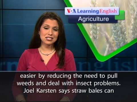 From VOA Learning English, this is the Agriculture Report. Straw bale gardening is a way to grow food above the ground. Straw is what remains of plant stems after grain is harvested. The long, dry tubes are gathered into bales. Bales are often about a meter long and half a meter high and wide. Straw is different from hay. Hay is made from whole plants and used to feed animals. Straw is used mostly for animal bedding. Joel Karsten wrote a book called "Straw Bale Gardens." He says this ancient, and increasingly popular, idea is a form of container gardening. He says using containers makes gardening easier by reducing the need to pull weeds and deal with insect problems. Joel Karsten says straw bales can require less water, and prevent plant diseases caused by too much water in the soil. He says it is not possible to overwater a bale of straw because all the extra water just runs out the bottom. In areas with polluted soil, growing food in straw bales is easier than building above-ground containers for soil. Oats and wheat are the most commonly baled grains in the United States. Rice straw is also good for baling and gardening. The straw bale becomes both the container and the growing material. Preparing the bale takes about two weeks. The first step is to add water and fertilizer to the center of the bale every day for three days. This begins the process of bacteria breaking down the straw into a growing medium. Once this happens, the bales are ready for seeds or young plants. Some experts say planting seedlings is better than growing from seeds. You can find plenty of information about straw bale gardening on the Internet. For VOA Learning English, I'm Alex Villarreal. (Adapted from a radio program broadcast 21May2013)