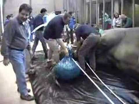 Tusko, an asian bull elephant, undergoes a complex procedure to extract an infected tusk. Oregon Zoo Veterinarian Dr. Mitch Finnegan explains the operation.
